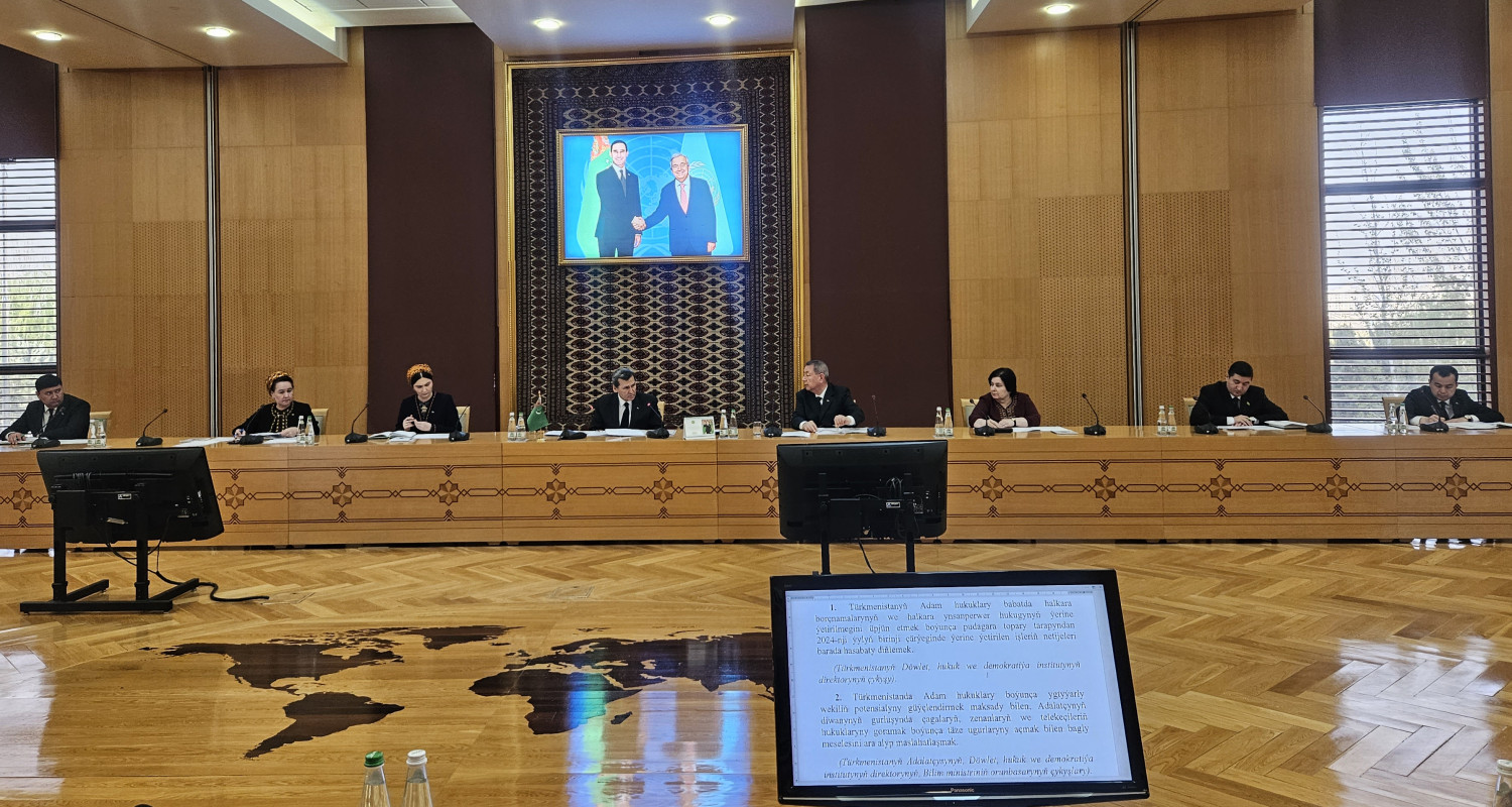 The Ministry of Foreign Affairs of Turkmenistan held a routine meeting on April 6, 2024. The purpose of the meeting was to oversee the fulfillment of Turkmenistan's commitments in the areas of human rights and international humanitarian law. Representatives from various organizations such as the Mejlis of Turkmenistan, several ministries, sectoral departments, and public associations were in attendance.