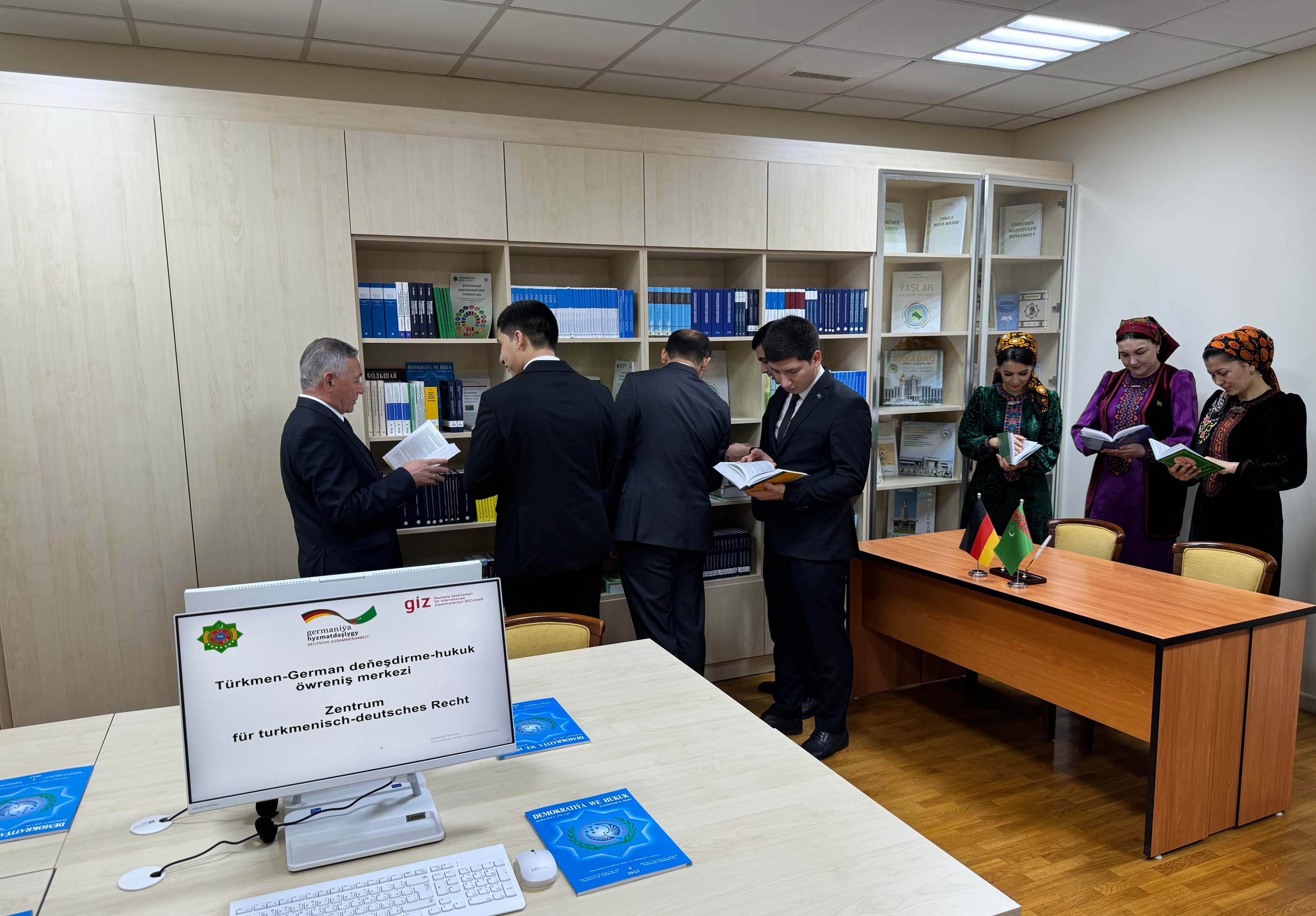 The Resource Center was created on the basis of a Memorandum of Understanding on cooperation in the field of law, which were signed between the Institute of State, Law and Democracy of Turkmenistan and GIZ. As part of the opening ceremony, the corresponding Regulations on the Center were signed.